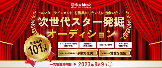 賞金総額現金101万円!サンミュージック名古屋が新人発掘オーディションを開催!