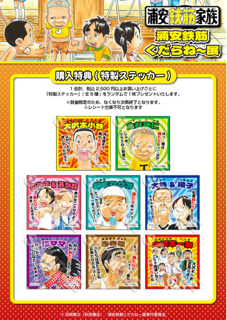 会場でグッズを購入頂きアンケートに答えていただいた方に抽選で、「あっぱれ!浦安鉄筋家族」の額入りペン画 (トーンや背景などのアシスタントさんのデジタル作業が入る前の、浜岡先生のアナログ原画) が50名様に当たるキャンペーンがスタート!「浦安鉄筋くだらね〜展」物販コーナーにてグッズを購入し、レシートに記載されたURLにアクセス、アンケートに回答すると応募完了です。締切は10月22日23:59まで。※当選は発送をもってかえさせていただきます。※原画はイメージです。