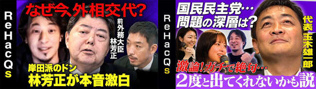 新進気鋭のスタートアップを扱う「新ファンタスティック未来」(MC:スザンヌ)、経済政策や国際関係を徹底討論する「ReHacQs」(MC:ひろゆき)、カルチャーから福祉まで幅広い題材を扱う「mudai」(MC:成田悠輔)、経済・金融のキーパーソンを深掘りする「あつまれ!経済の森」(MC:後藤達也)などトーク番組の他、旅をしながらまったり地方創生を考える「ReHacQ旅」など知的エンタメ番組を配信しています。