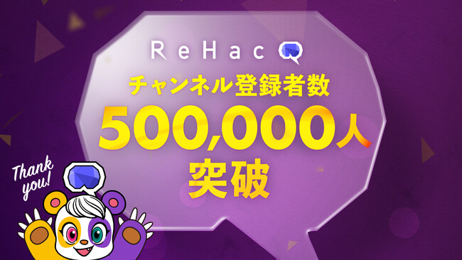 株式会社tonari(東京都港区、代表取締役 高橋弘樹)が運営するビジネス動画メディア『ReHacQ(リハック)』は、公式YouTubeのチャンネル登録者数が50万人を突破しましたことをお知らせいたします。(23年10月時点)