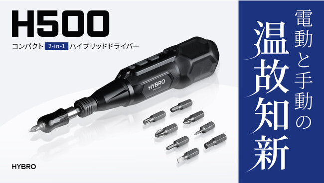従来のプロ用電動ドライバーの重くて、大きくて、使いにくい、というイメージを払拭し、「パワーはプロ仕様なのに、非常にコンパクトで初心者がDIYでも使える」次世代のハイブリット電動ドライバーを発表。現在世界24か国で累計販売50万台を突破した、大好評のHYBROシリーズから最新作H500がついに、日本クラウドファンディングサイト「Makuake」にてプロジェクト を開始しました。