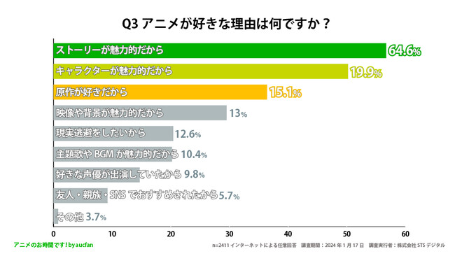 株式会社STSデジタルと株式会社オークファンが共同運営しているアニメのお時間です!(URL:https://aucfan.com/vod/)は、20歳〜60歳以上の男女2411人を対象に「好きなアニメについてのアンケート調査」を実施しました。