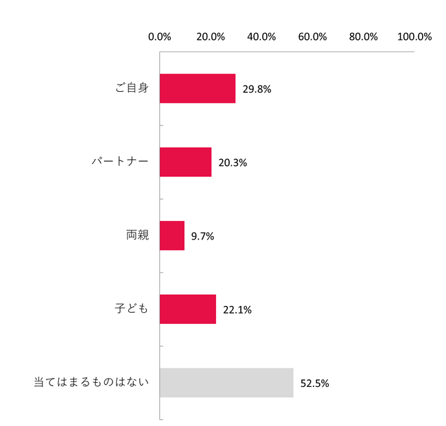 ご家族で中古のスマートフォンを利用している人について、当てはまるものをすべてお答えください。※中古のスマートフォンを購入して利用している場合や、家族内でのスマートフォンのおさがりを使用している場合も含む。