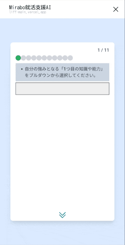 11個の設問に回答するだけで、面接やES対策ができるあなただけのオリジナルのエピソードが自動で生成されます。
