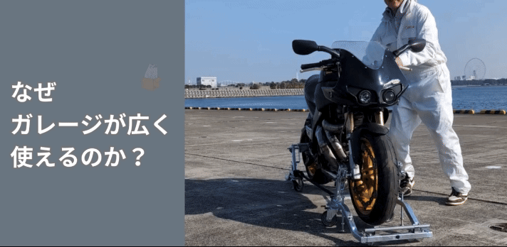 ・ 狭いガレージでもバイクを自由に動かすことができます!