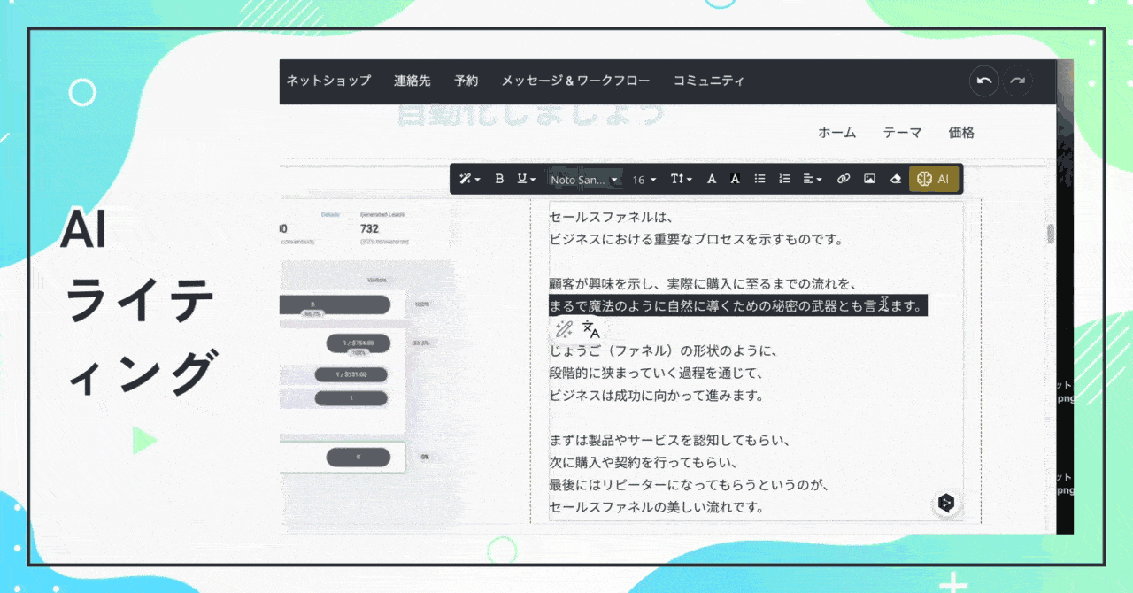 LP・ファネル・メール配信・決済・会員サイトに加え、AIコピー生成とコミュニティ機能を正式搭載。これで “作る・売る・ファンを育てる” が1ツールで完結