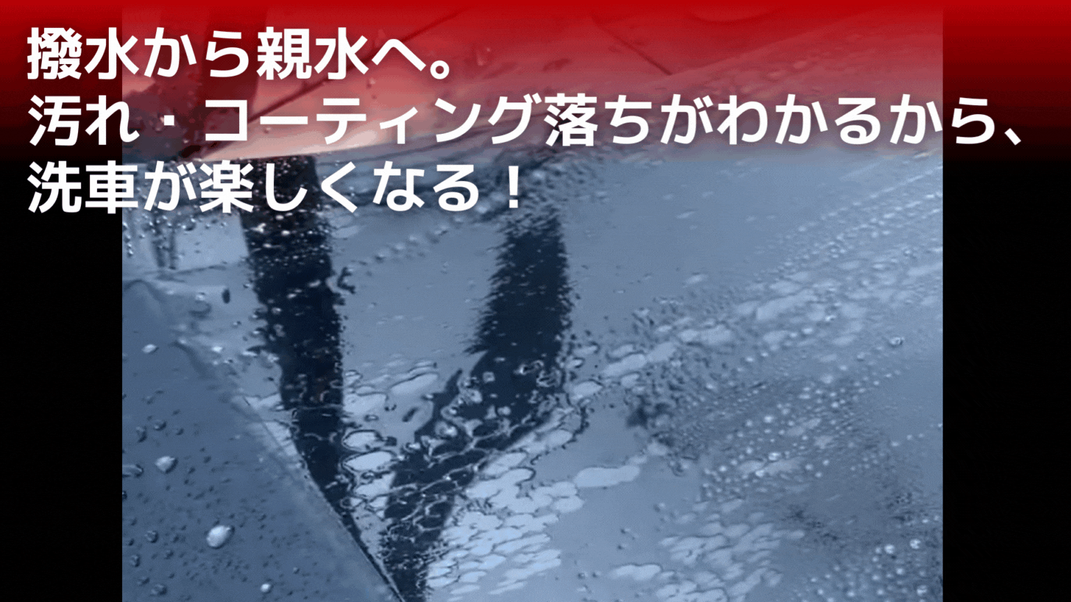 1. 視覚的に確認できる剥離効果「KTXセット」の特徴の一つは、コーティングが剥がれていく過程を視覚的に確認できる点です。施工前は撥水性があったボディ表面が、洗浄に伴い徐々に親水性に変化していくのが一目で分かります。水滴が弾かなくなり、水が均一に広がる様子を確認することで、コーティングが正しく除去されたかどうかを誰でも簡単に判断できます。