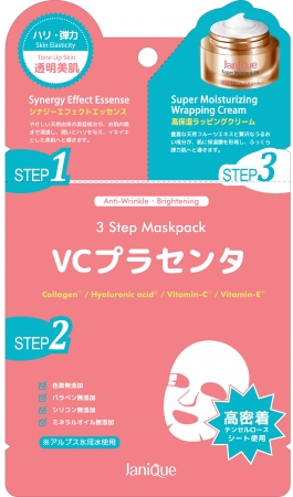 Step2:シートマスクパックは、「テン・セルロースシート(精製セルロース繊維)」の採用で、これまでにない圧倒的な密着感で、まるで美容液で肌を包むように素肌と一体化し、至福の心地よさで美容成分を肌の奥まで深く浸透させます。各コンセプト成分(カタツムリ・プラセンタ・アスタキサンチン)以外にもコラーゲン・ヒアルロン酸・ビタミンC、Eが共通で含まれていて、たっぷりと潤いを与え、つややかな美肌へと導きます。