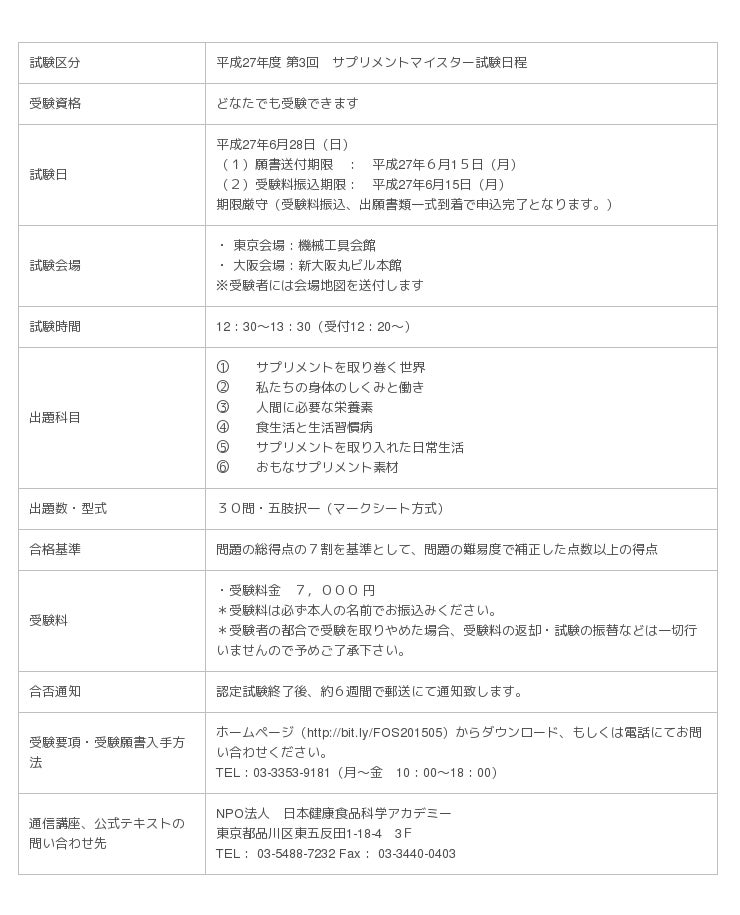 ■ サプリメントマイスター資格試験概要