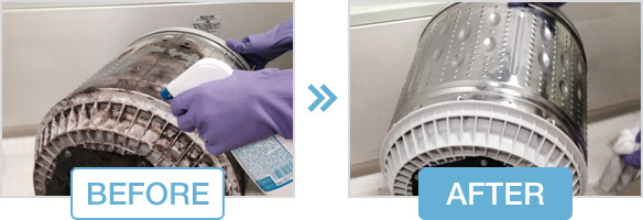 自分ではなかなか掃除ができない、脱水槽のカビ汚れを分解し、高圧洗浄でキレイに洗います。