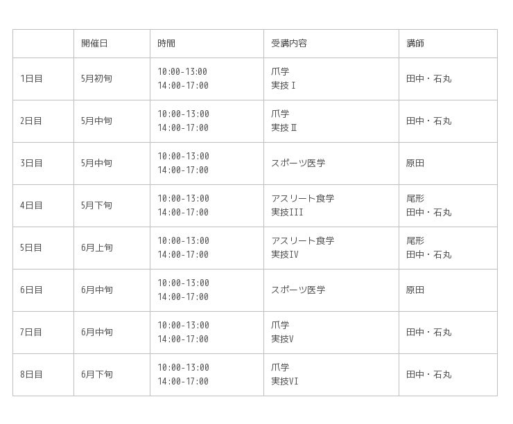 ※開催日・受講内容が変更になる可能性がございます。詳細の講座日程、講座内容はお申込み後にご連絡させていただきます。