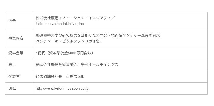慶應義塾大学の研究成果を活用したベンチャー企業の投資育成で協業