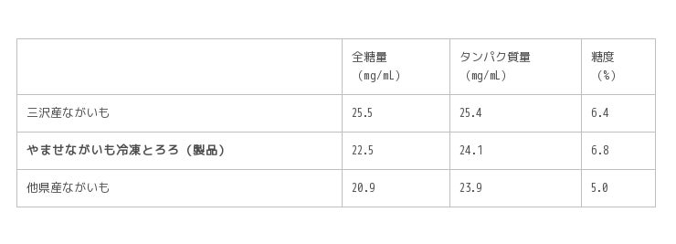 長芋の成分分析を実施したところ、アミラーゼの活性が他県産のものに比べても三沢産の長芋の方がアミラーゼの活性があることが数値でも確認できました。アミラーゼの活性があるという事は消化器官への負担も少なく、美容健康志向の方への販売も期待できる商品という事が分かりました。