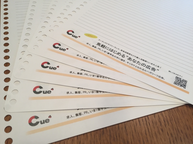 学生へのアプローチに特化したルーズリーフ広告Cue’leaf(キューズリーフ)がサービス開始!