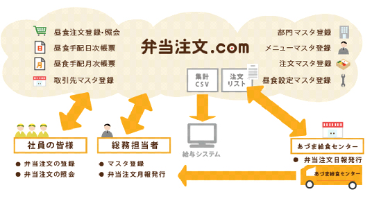 弁当注文管理のクラウドサービス『弁当注文.com』を提供する株式会社システムフォワード(本社:福島県いわき市、代表取締役:大内 一也、以下「システムフォワード」)は、1日4,500食の弁当の製造から配達まで一貫して行う株式会社あづま給食センター(本社:東京都葛飾区、代表取締役:古川 直、以下「あづま給食センター」)と、東京都内における企業向け弁当宅配事業で業務提携し、2016年8月1日より弁当の注文管理から製造・配達までをアウトソーシングサービスとして無料で提供を開始します。