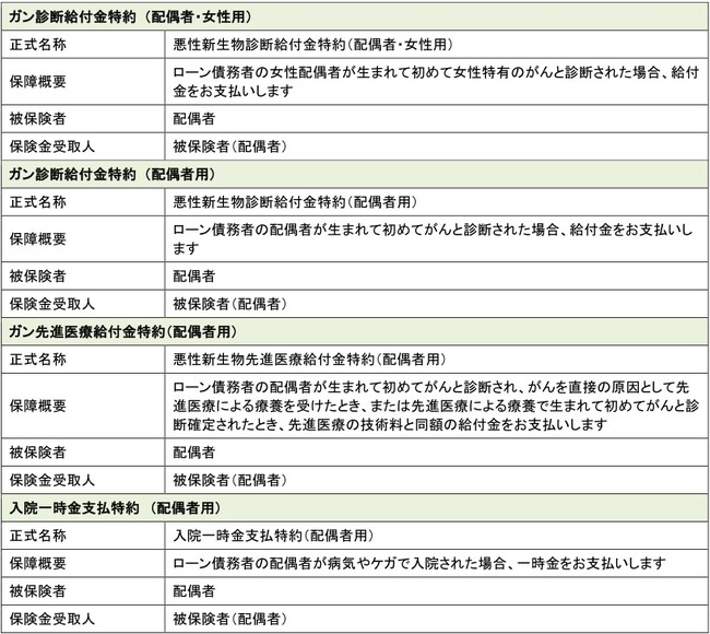 「配偶者の保障」は、「就業不能信用費用保険」を主契約とし、これに付帯される特約です。