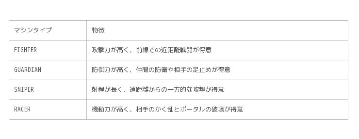 ゲームルールは『制限時間内にポイントを多く取った方が勝利』と非常にシンプルで、ポイントはフィールドに点在するポータルを破壊することで獲得できます。また、相手プレイヤーを攻撃することによって相手のポイントを奪うこともできます。ゲーム内で選択できるマシンは全4種類で、それぞれ特徴が異なるためプレイヤーたちには戦略的な立ち回りが要求されます。