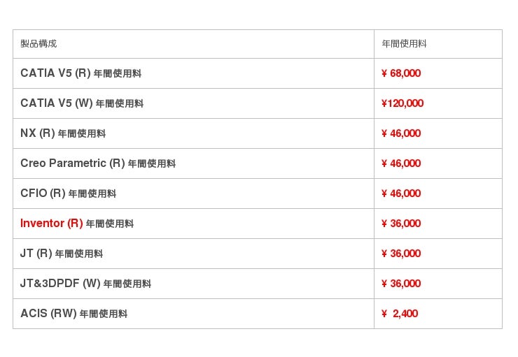 ※3DTascalX/Light及びインターフェースオフ゜ションの更新費用は、年間使用料となります。