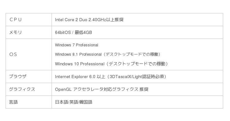 ※インターフェースオフ゜ション製品のご使用には3DTascalX本体が必要です環境