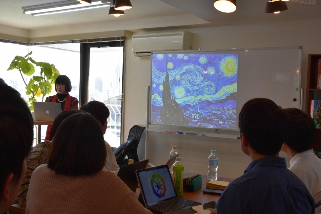 鈴木 氏は、ある絵画を用いて回答。絵画を1分間見たときの感想によって、その人の重視する観点が理解できると述べました。実際に絵画を見終わった参加者がどのように感じたかを発表すると、見方が全く違うことを学習。全体像を把握しておしゃれな夜景と答える参加者がいれば、細部をきちんと描写する参加者もいました。自分以外の人も同じ視点で見ていると思い込みがちだが、それぞれに全然違うことがわかり、自身ではなかなか気づかない強みや視点があることを肌で感じて理解しました。
