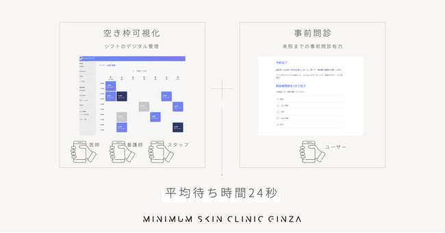 当院では開院当初からクリニック向けSaaSツール「B4A(※1)」を導入するなど、デジタル化を推進し、デジタルネイティブなクリニックを標榜して参りました。スタッフや医師のシフトをデジタル上で管理することで、正確な空き枠を可視化することで、ユーザーにはその場で完結する「リアルタイム予約」と、待ち時間の短い体験を実現しています。予約から来院までに問診票記入を事前に記載いただくことで、さらに待ち時間を短縮することで、平均値より大きく下回っていることが実測調査でも明らかとなりました。