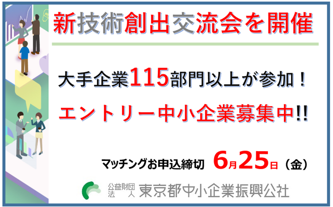 公益財団法人東京都中小企業振興公社多摩支社(東京都昭島市)では、「2021年度 新技術創出交流会」を開催致します。本年は115部門以上の大手企業等が参加します!
