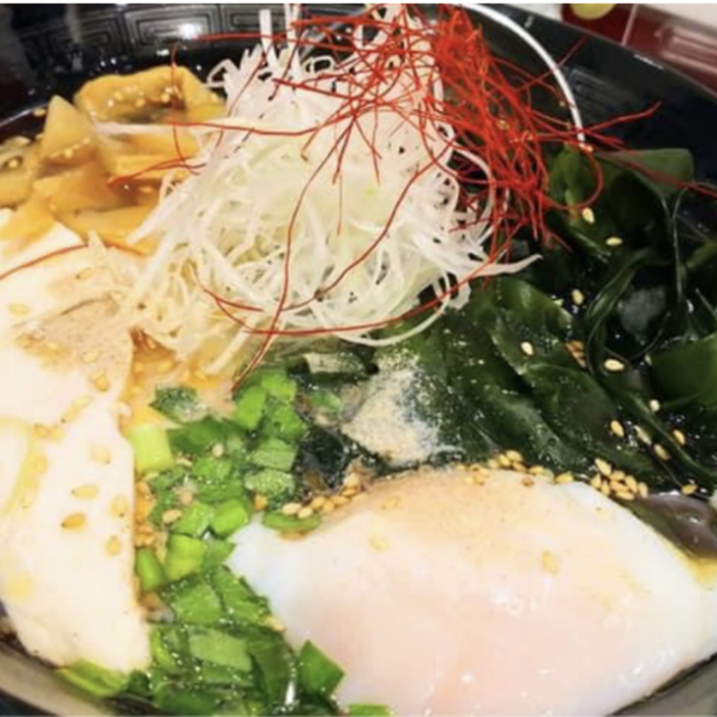 特製かえし醤油と煮豚バラ肉、そして生卵のトッピングで仕上げる元祖濃厚系豚骨醬油 「点心バルやすながの茶系徳島拉麺」