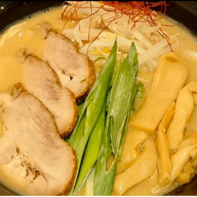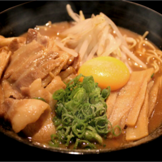豚骨ベースに鶏ガラをバランス良くブレンドし、濃厚さの中にもあっさり感があるスープと自家製チャーシューの絶妙な相性を味わう「点心バルやすながの黄系徳島拉麺」