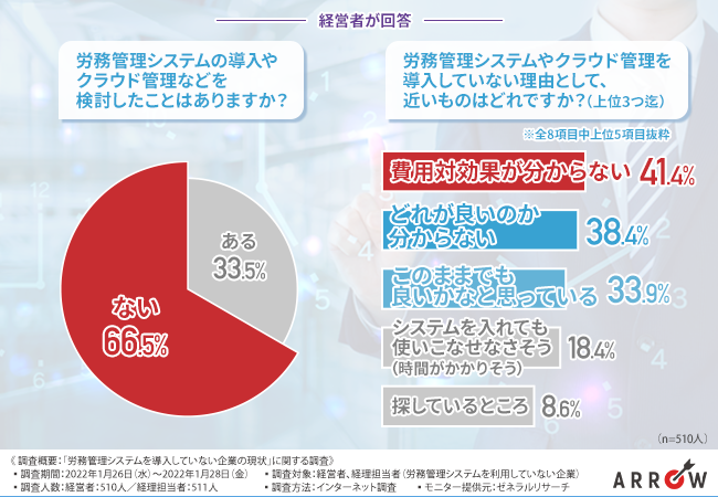 この結果から、多くの経営者が労務管理システムなどについて、そもそも不案内であることがわかります。