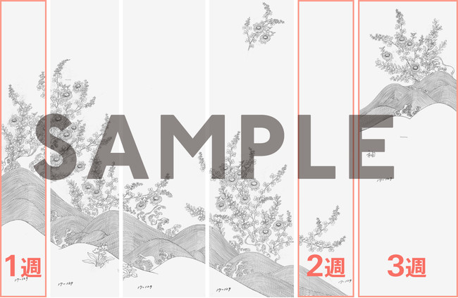 その6連作の内、3枚の画像を3週にわたって無料配布。残りの3枚は、マーケットプレイス運営開始時に販売を開始します。関谷染色が永きにわたり守り続けてきた文化資産である、京友禅の意匠をコレクションしてみませんか。