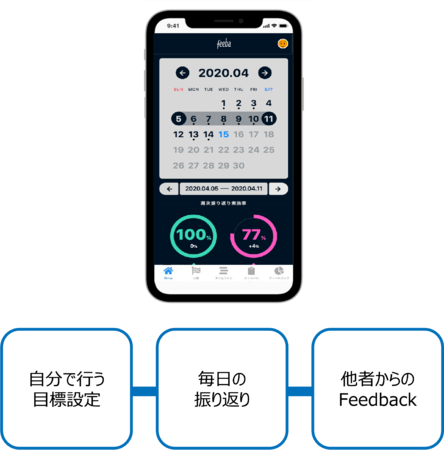 ライジング・フィールドでの1泊2日の集合トレーニング後は1ヶ月、日常での実践トレーニングとなります。語学の習得と同じように、得た経験を何度も繰り返し、日常で実践してこそ真の成長があります。ここでは、チームボックスが独自のメソッドにより開発した行動変容支援ツール「Feeba(フィーバ)」を使用します。自己内省を記録するとともに、その内容を他のリーダー同士で確認できるため、相互学習や相互支援が生まれます。