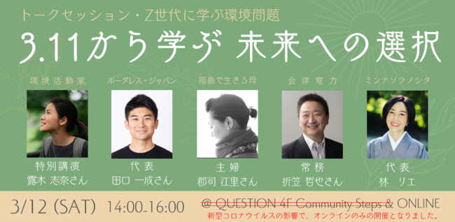 ミンナソラノシタのトークイベント「3.11から学ぶ未来への選択」を3月12日のオンラインにて開催