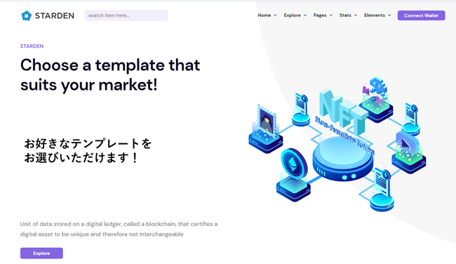 また独自のNFTマーケットプレイス構築をお考えのユーザー様には、多くのテンプレートをご用意したSTARDENをご利用になり、簡単にご自分のマーケットプレイスを持つことのサポートもしております。(無料)