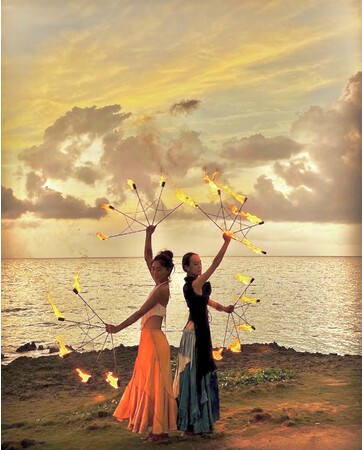 ツインユニット「Win & BiBi」のファイヤーダンス。