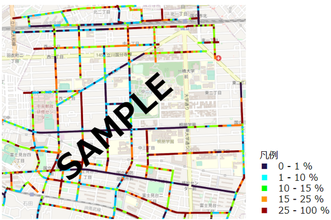 本サービスの企画にあたっては、(1) 国庫補助を申請できる指標での測定基準を満たすこと、(2) 自治体の道路管理者が庁内や国庫補助使用の報告に使い易いデータを提供すること、(3) 路面性状測定車両が入れないような狭い道路を測定ができる低コストなサービス提供をすること、をポイントに進めてまいりました。