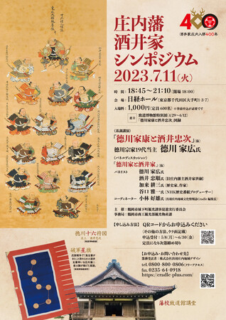 シンポジウムは、徳川宗家19代当主徳川家広氏の基調講演、続くパネルディスカッションでは、徳川家、酒井家、歴史家・作家、歴史番組プロデューサーなど関係者が集い、徳川家と酒井家の篤い信頼、幕末以降の庄内藩の動向などを語るプログラムです。入場は有料で事前申込みが必要となります。ご参加の皆様に致道博物館特別展(4/29〜6/12)「徳川家康と酒井忠次」の豪華図録(106頁)を進呈します。