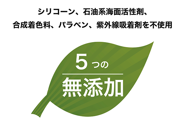 シリコーン、石油系界面活性剤、合成着色料、パラベン、紫外線吸収剤等の添加物を不使用