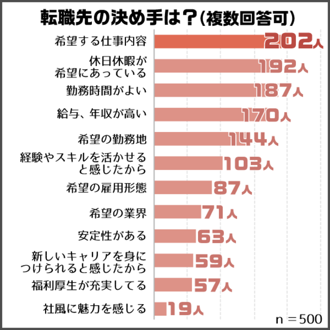 転職経験がある方男女500人のアンケート調査結果!転職先の決め手第2位は「休日休暇」!第1位は?
