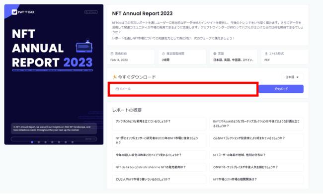 ( https://nftgo.io/ja/research/reports/2023-nft-annual-report )の〈今すぐダウンロード〉欄にて