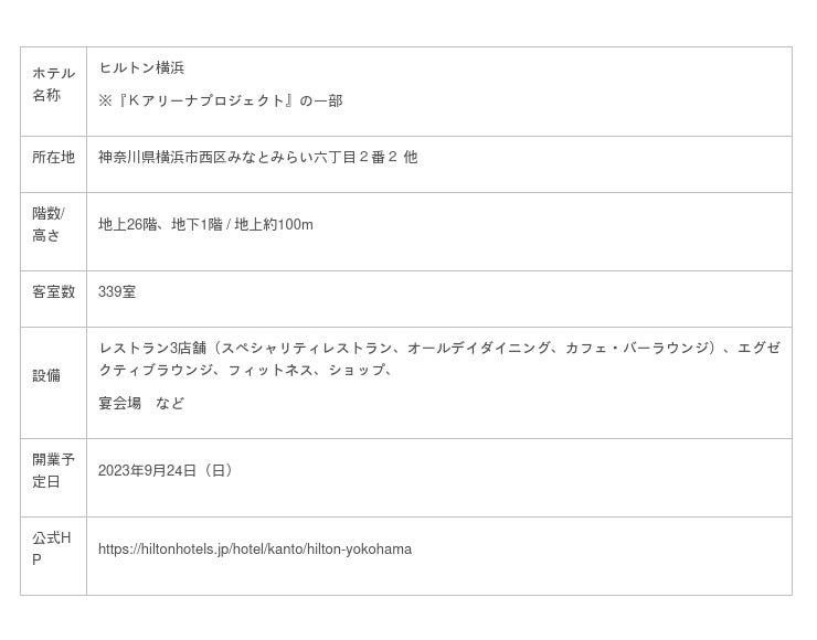 世界最大級の音楽専用アリーナ『Kアリーナ横浜』に隣接する横浜初進出のヒルトン、公式サイトにて宿泊予約の先行受付を開始