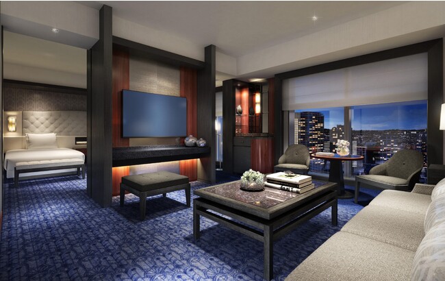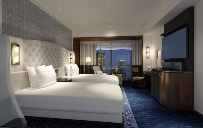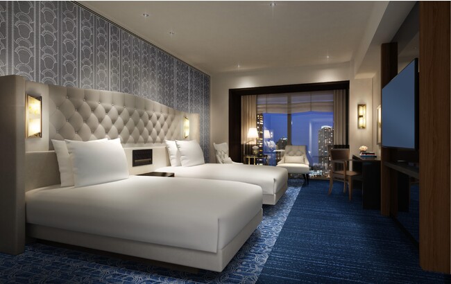 デザインは、ホテルの建築デザインコンセプトである「YOKOHAMA Deco」に則り、横浜の歴史的建築物にみられる繊細かつスタイリッシュなアール・デコ様式の要素を客室にも取り入れたほか、夜景に溶け込むシックで落ち着いた配色を施し、横浜で過ごす上質な時間を引き立たせるしつらえでゲストをお迎えいたします。