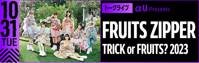 10月31日ハロウィーン当日にFRUITS ZIPPERメンバーが登場する「TRICK or FRUITS? 2023」がYouTubeで配信決定。ハロウィーンをテーマにメンバーがトークするだけでなく、番組配信中に「cluster」と「αU metaverse」に入り、ファンとリアルタイムで交流する次世代のファンミーティングです。