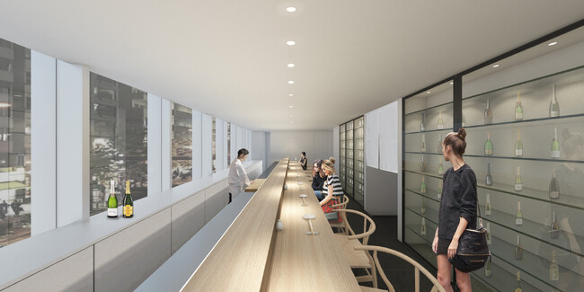 2階には鮨とシャンパーニュが相互に旨味を引き立て合う、マリアージュを味わえるレストラン「AWA SUSHI」を併設。カウンター10席のみ完全予約制。宿泊者以外も利用可能です。