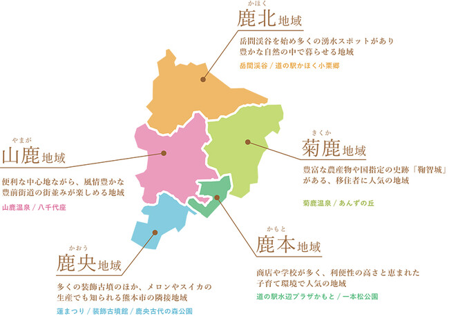 ロクレンジャーのモチーフともなった山鹿市の5つの地域