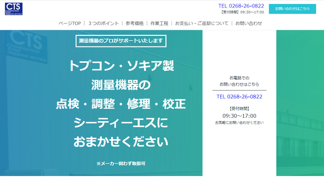 世界最大級の設備 測量機器の点検・調整・修理・校正サービスを提供する株式会社シーティーエスが特設サイトを開設