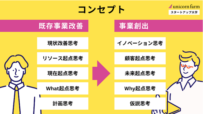 日本の義務教育では徹底して、企業に勤める人としてのマインドセットを体得するプログラムになっていることが多く、また社会に出ても既存事業に従事することで、新規事業を創出する思考を身につける機会を失ってしまいます。