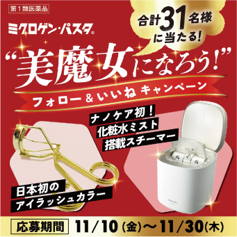 まゆ毛の発毛促進剤:ミクロゲン・パスタ「“美魔女になろう!”フォロー&いいねキャンペーン」