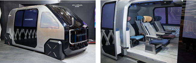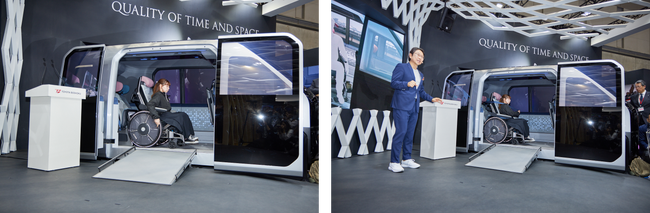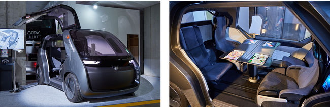 「当社はモビリティーの新市場として期待される自動運転やMaaSに向けた価値創造にも注力。今回展示の自動運転レベル4を想定したライドシェア空間「MX221」です。