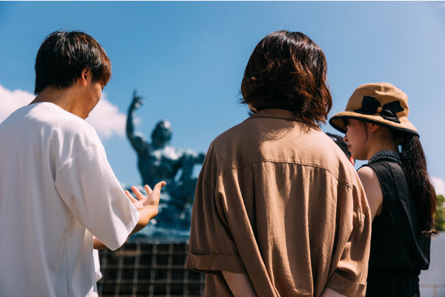 修学旅行生やインバウンド旅行客を対象に、Peace Education Lab Nagasakiが提供する対話型体験学習。平和公園や爆心地公園付近を中心としたフィールドワーク「Peace Dialogue」や、修学旅行の事前学習や事後学習に使えるワークショププログラムまで、必要に応じてプログラムをカスタマイズし、価値観を変える学習体験を提供します。これまで中学・高校の修学旅行の受け入れや、探究学習の授業などでプログラムの提供実績があります。