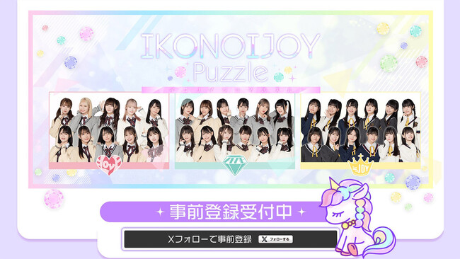 =LOVE、≠ME、≒JOYの3グループが登場する、スマートフォン向け協力パズルアプリゲーム『IKONOIJOY Puzzle』(イコノイジョイパズル)の事前登録キャンペーンを開始!